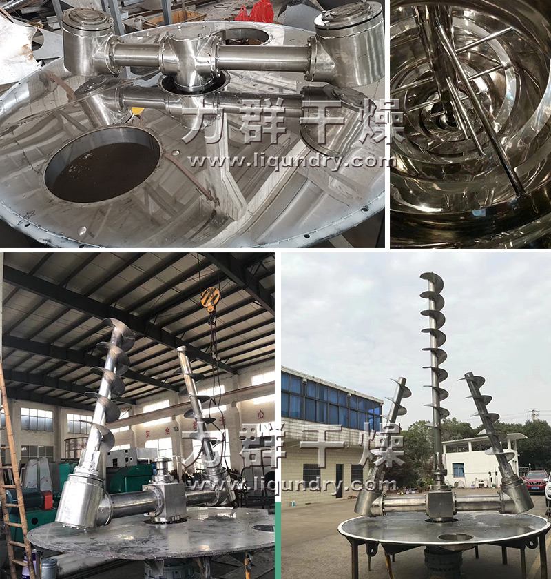 1. 螺旋沿壁公轉(zhuǎn),使物料沿錐壁作圓周運(yùn)動;